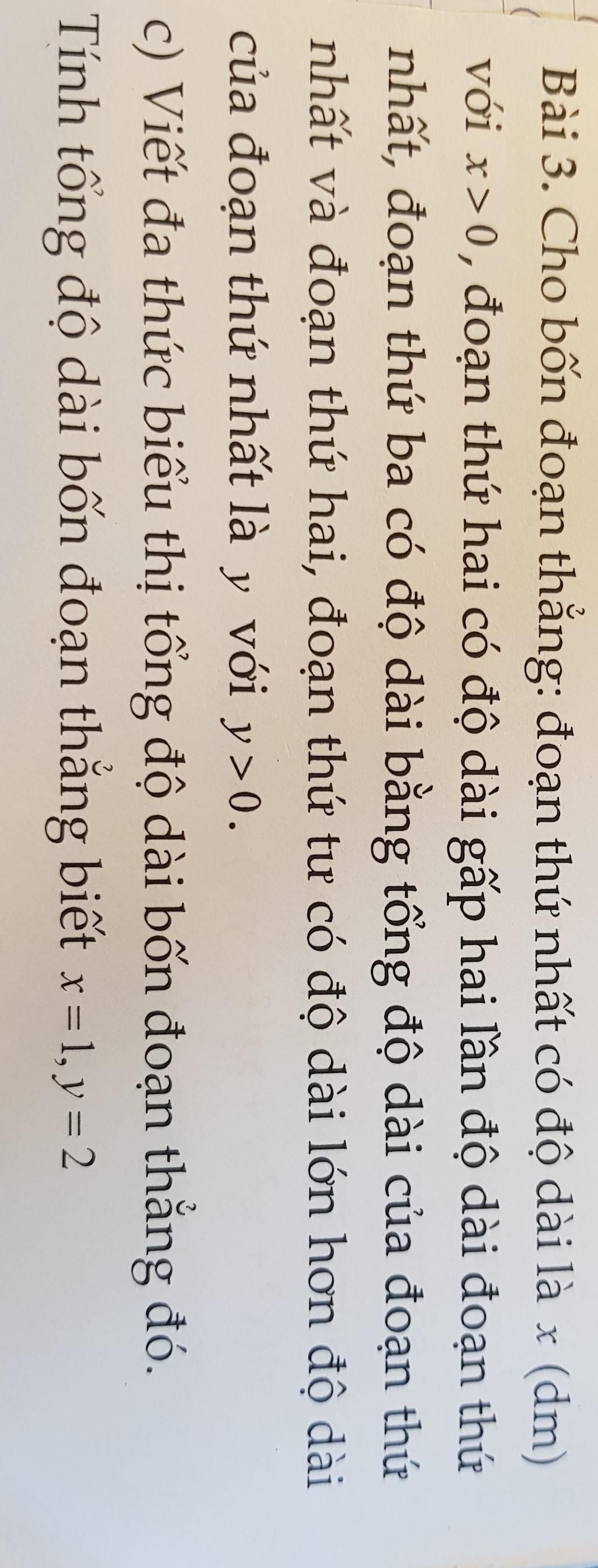 Bài 3. Cho bốn đoạn thẳng: đoạn thứ nhất có độ dài là x (dm)