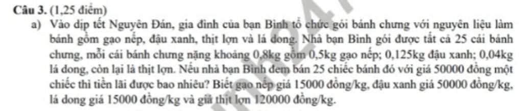 Cần số tiền lá dong để làm mỗi cái bánh chưng là `:`