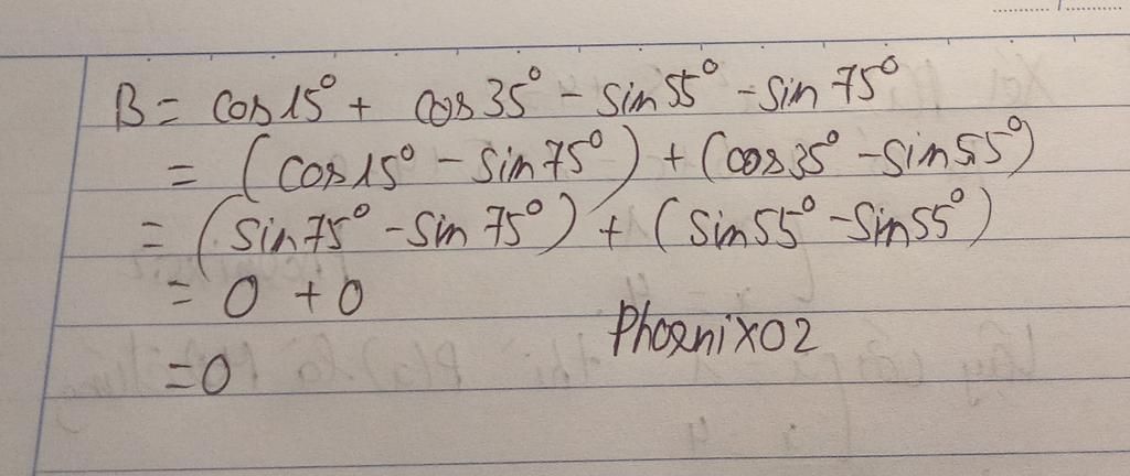 `=> B = sin75^o + sin55^o - sin55^o - sin75^o`