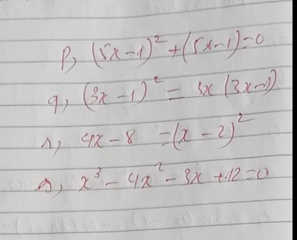`q)` `(3x - 1)^2 = 3x(3x - 1)`