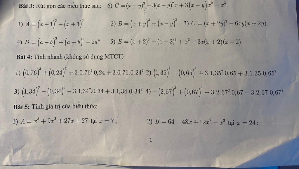 4) D= (a - b)+(a+b)-2a³ 5) E = (x+2)³ + (x − 2)³ + x³ − 3x(x+2)(x − 2)