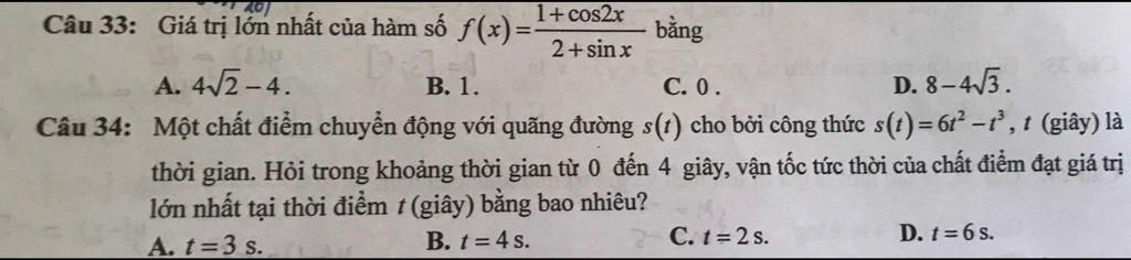 Câu 33: Giá trị lớn nhất của hàm số f(x)=