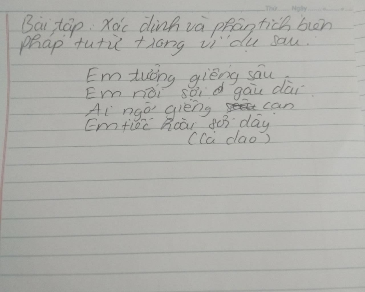 Biện pháp tu từ ẩn dụ "nước giếng sâu, sợi gàu dài, nước giếng cạn, sợi dây"