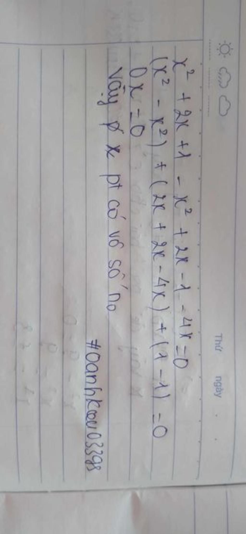 `<=> ( x^2-x^2)+(2x+2x-4x) + ( 1 - 1 ) =0`