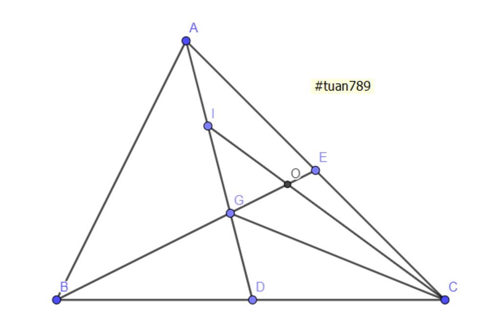 Trên đường trung tuyến của AD của Tam giác ABC , lấy hai điểm I và G sao cho AI = IG + GD . Gọi E là trung điểm của AC 1, Chứng Minh : B ,G ,E thẳng hàng và so sánh BE với GE 2, CI cắt GE ở O . Điểm O là gì của Tam giác ACG ? Chứng minh BE = 9 . OE