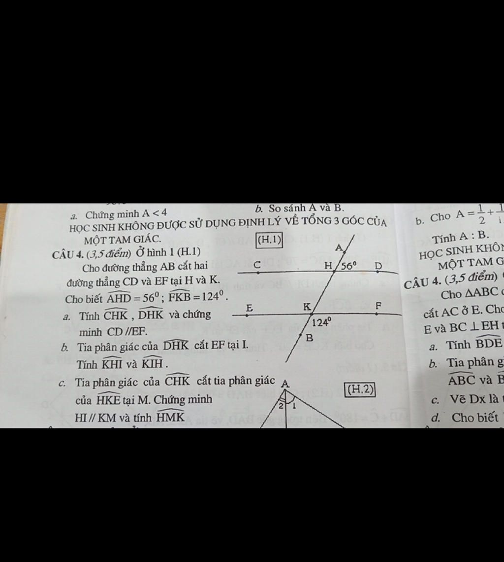 CÂU 4. (3,5 điểm) Ở hình 1 (H.1)