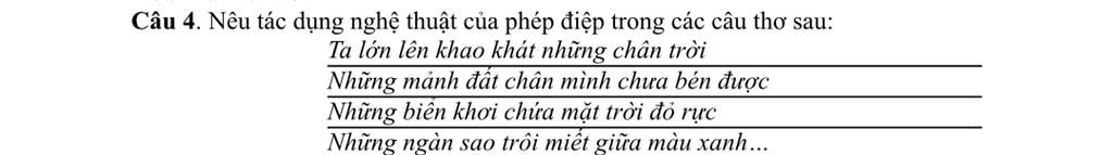 Nêu tác dụng nghệ thuật của phép điệp trong các câu thơ sau