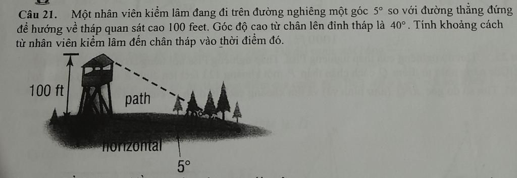 $\to AD=100ft, \widehat{ABC}=40^o, \widehat{DBC}=5^o, \hat C=90^o$