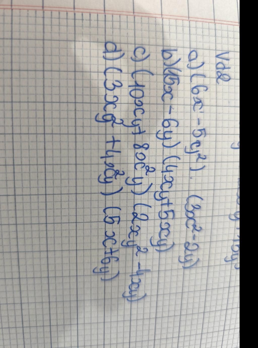 `a, (6x -5y^2) . (3x^2 -2y)`