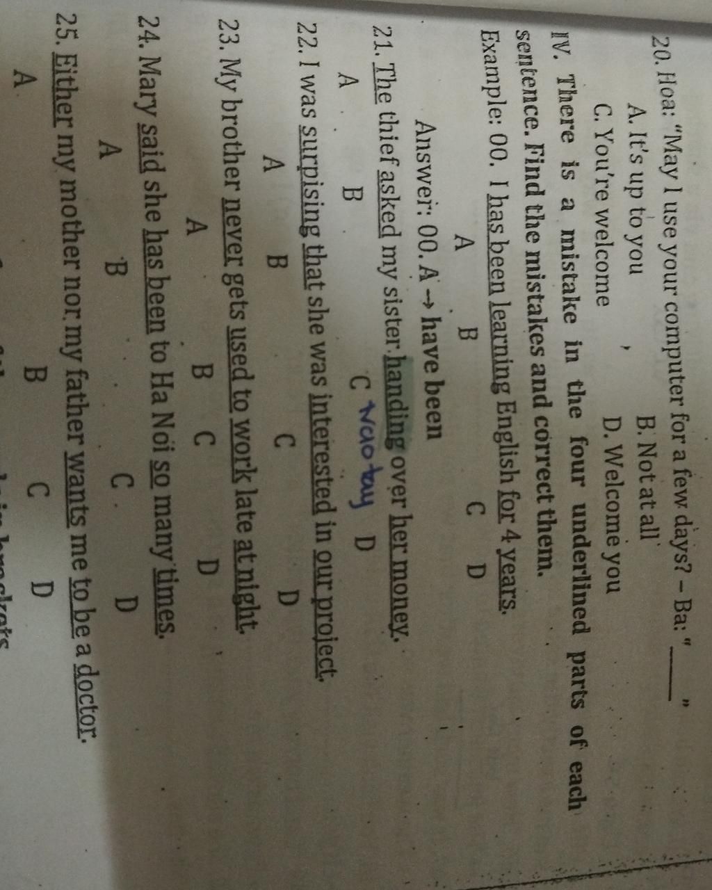 `->` Hoa : "Tôi có thể dùng máy tính của bạn vào ít ngày được không?" `->` Có thể dùng "You're welcome" trong trường hợp cho phép ai làm gi
