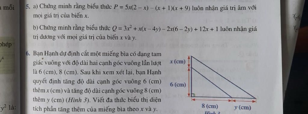 5. a) Chứng minh rằng biểu thức P = 5x(2 – x) = (x + 1)(x + 9) luôn nhận giá trị âm với