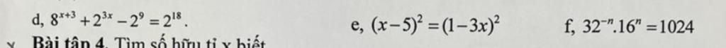 `d.` `8^(x+1) + 2^(3x) = 2^9 + 2^18`