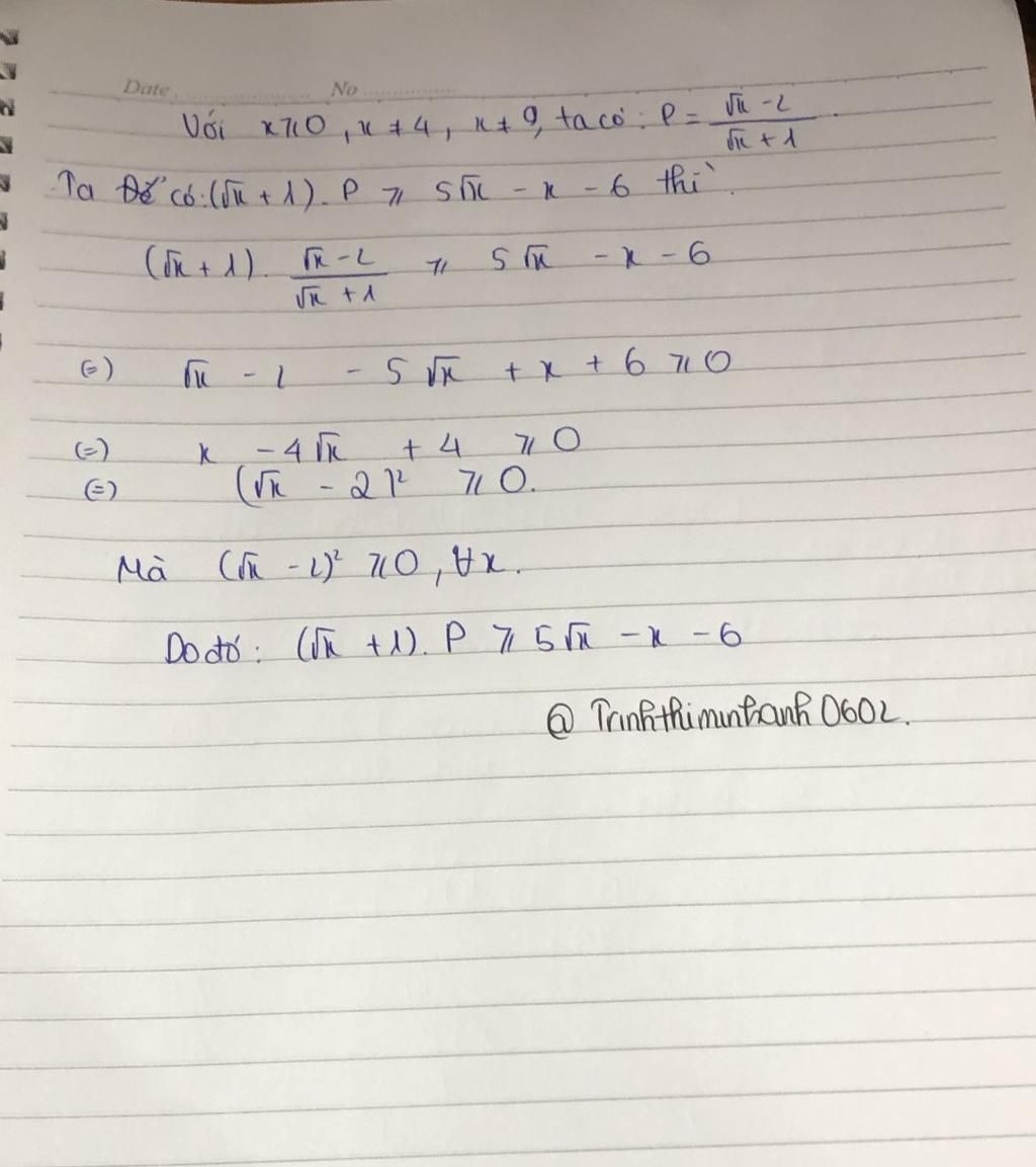 `Hay (\sqrt{x} + 1 ) . P >= 5\sqrt{x} - x - 6` ( đpcm )