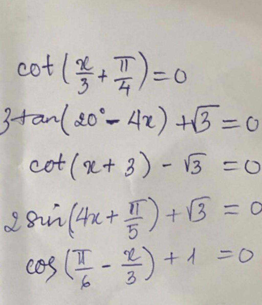 $\Leftrightarrow \cot \bigg(\dfrac{x}{3} + \dfrac{\pi}{4}\bigg) = \cot \dfrac{\pi}{2}$