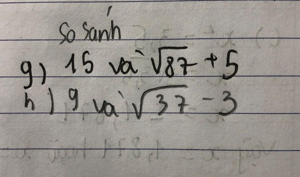 Có: sqrt(100) > sqrt(87) ⇒ 10 > sqrt(87) 10 + 5 > sqrt(87) + 5 15 > sqrt(87) + 5