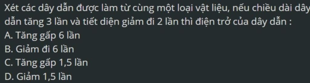 `=>` điện trở sẽ tăng `6` lần so với ban đầu