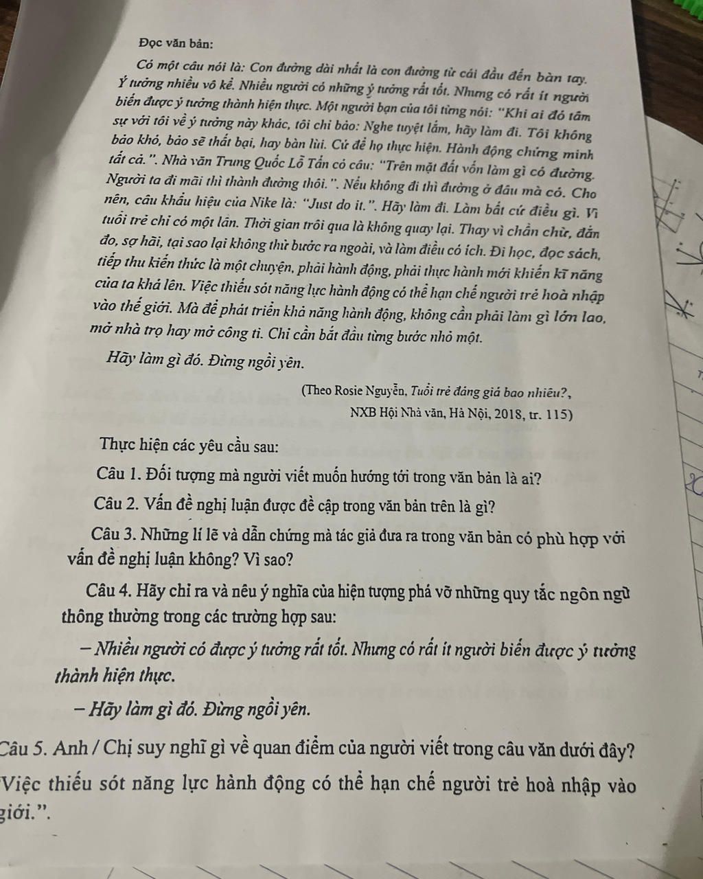 2. Vấn đề nghị luận được đề cập đó chính là hãy tích cực, chủ động, cố gắng hành động, biến những ý tưởng, suy nghĩ, kế hoạch đang ấp ủ của bản thân trở thành những việc làm nhỏ hàng ngày từng chút một