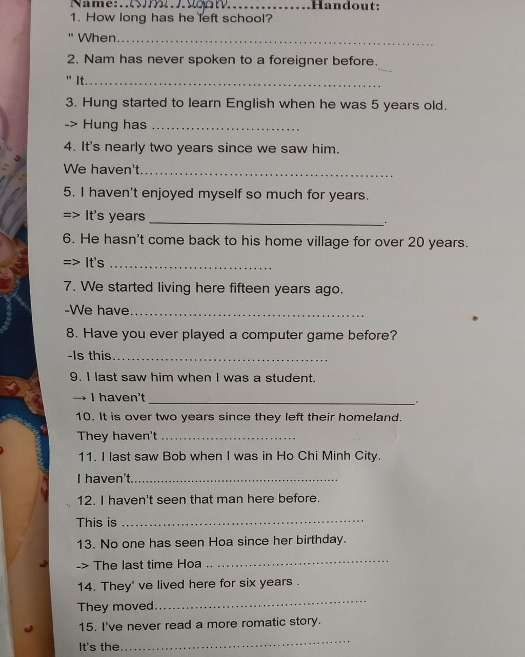 `11.` I haven't seen Bob since I was in Ho Chi Minh City.