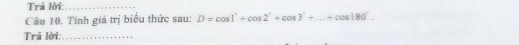 `D=cos1^o +cos2^o +cos3^o + ...+ cos180^o`