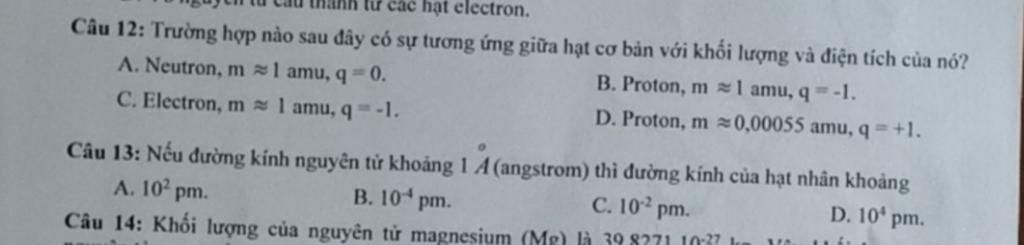 `@` Hạt notron có khối lượng gần bằng `1(amu)` là không có điện tích