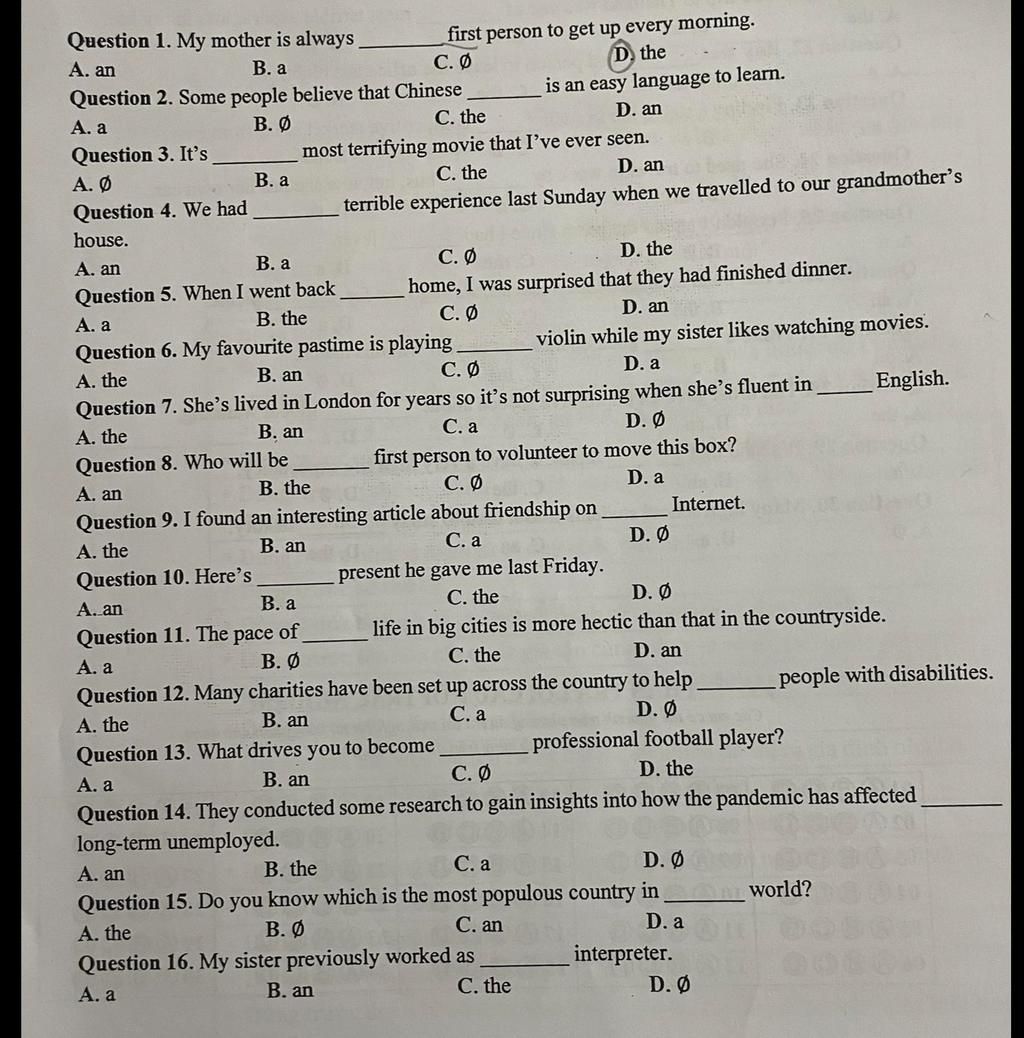 `15`. A. the