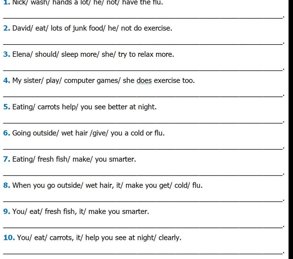 `1,` Nick washes his hands a lot, so he doesn’t have the flu
