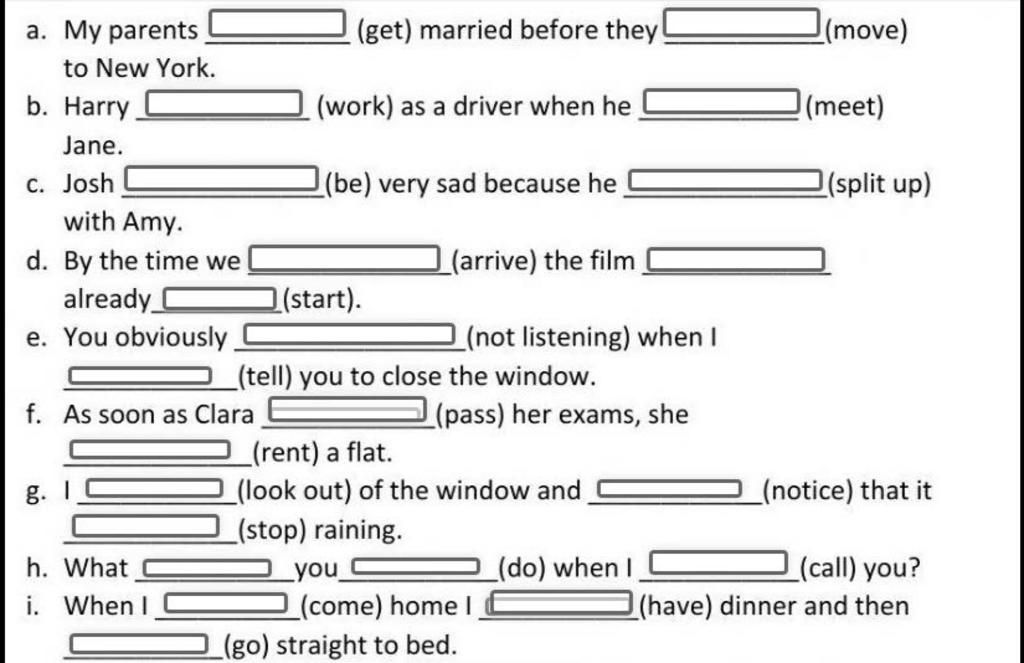 a. My parents got married before they moved to New York.