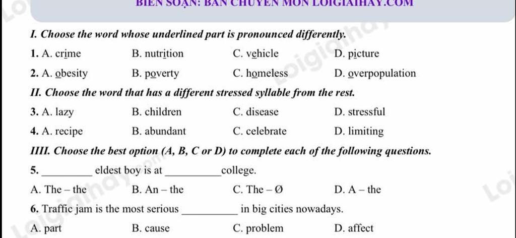 `1.` `A` ( Phát âm /aɪ/ còn lại âm /ɪ/ ).