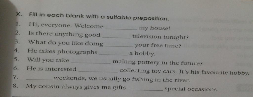 4. as ( as a hobby : lấy 1 việc làm gì đó làm sở thích, )