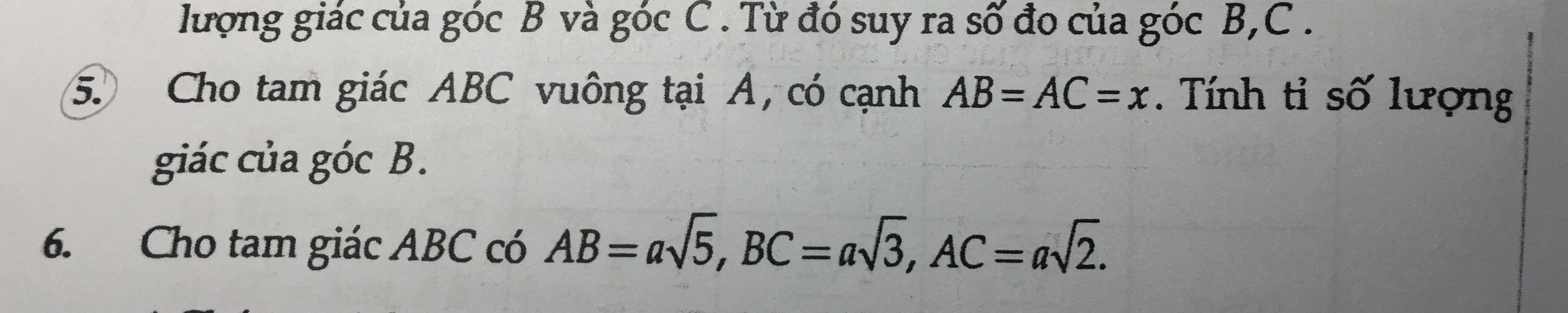 $\to \sin B=\dfrac{AC}{BC}=\dfrac1{\sqrt2}, \cos B=\dfrac{BA}{BC}=\dfrac1{\sqrt2},\tan B=\dfrac{AC}{AB}=1, \cot B=\dfrac{AB}{AC}=1$