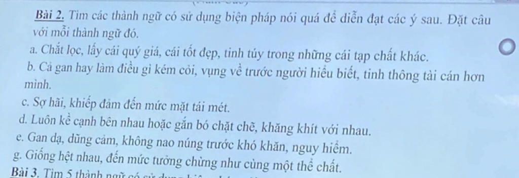 `@` Các thành ngữ có sử dụng biện pháp nói quá để diễn đạt các ý dưới đây :