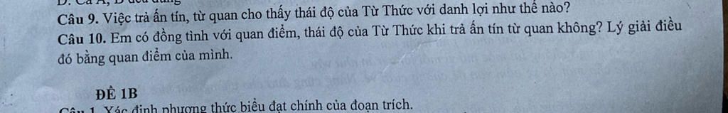 9. Việc trả ấn tín, từ quan cho thấy Từ Thức là người không màng danh lợi và không chịu bó mình trong vòng danh lợi chật hẹp.
