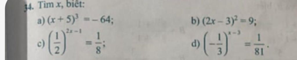 `=>(-1/3)^(x-3) = (-1/3)^4`