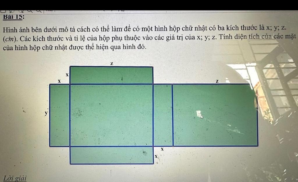 Diện tích của tất cả các mặt là: `2yx+4xz (cm^2)`