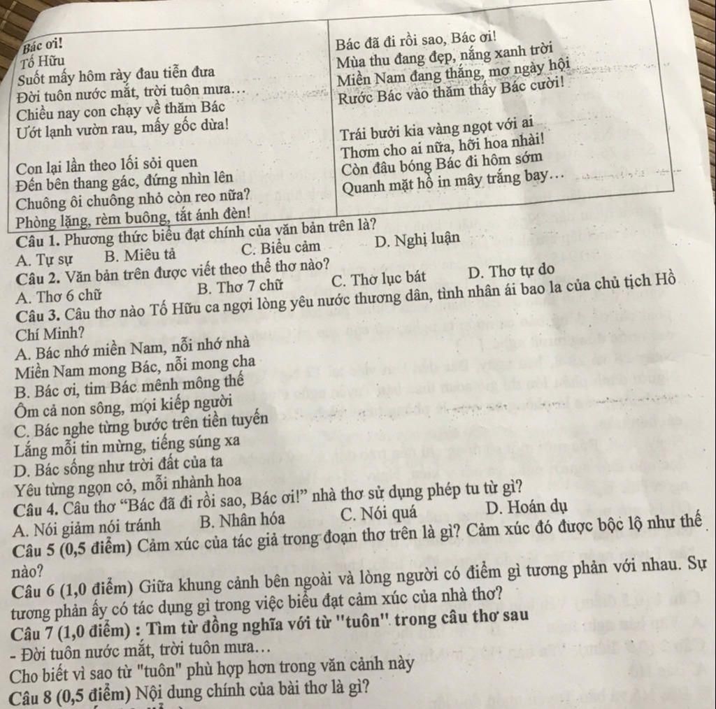 `->` Thể thơ của VB trên là thơ `7` chữ