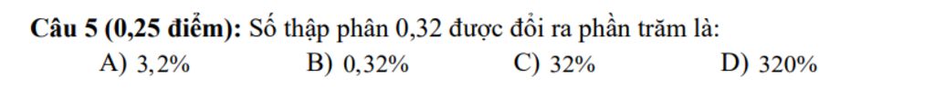 `->` Áp dụng quy tắc trên, để đổi số thập phân `0,32` ra phần trăm, ta làm như sau:
