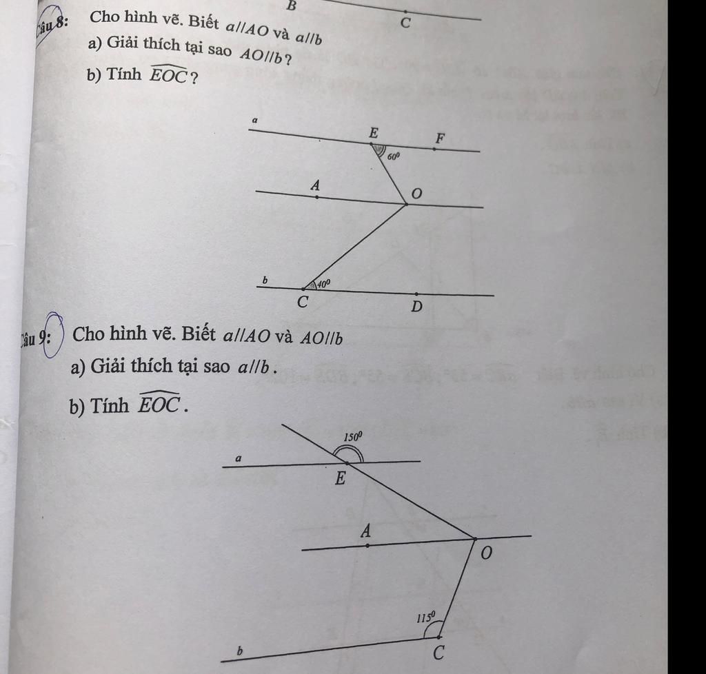 `a,` Ta có: `a //// AO; AO //// b`