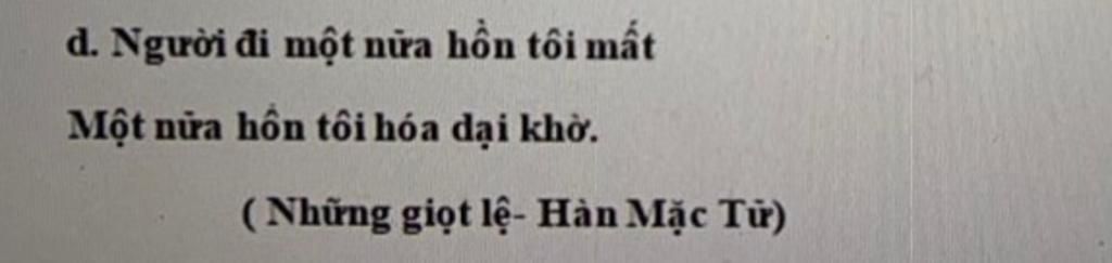 `d.` Người đi một nửa hồn tôi mất