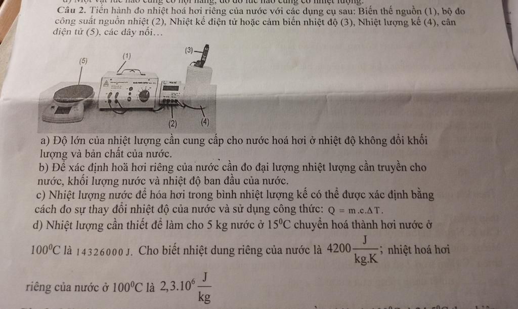 b) Để xác định nhiệt hóa hơi của nước, cần đo nhiệt lượng truyền cho nước, khối lượng nước.