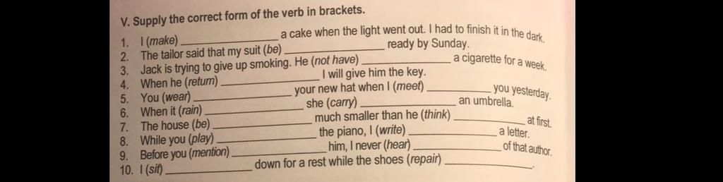 5. Hđộng "wear" đang diễn ra tại một thời điểm cụ thể trong quá khứ (khi gặp bạn), nên dùng thì quá khứ tiếp diễn; hđộng "meet" là một hành động chấm dứt trong quá khứ, dùng thì QKĐ.