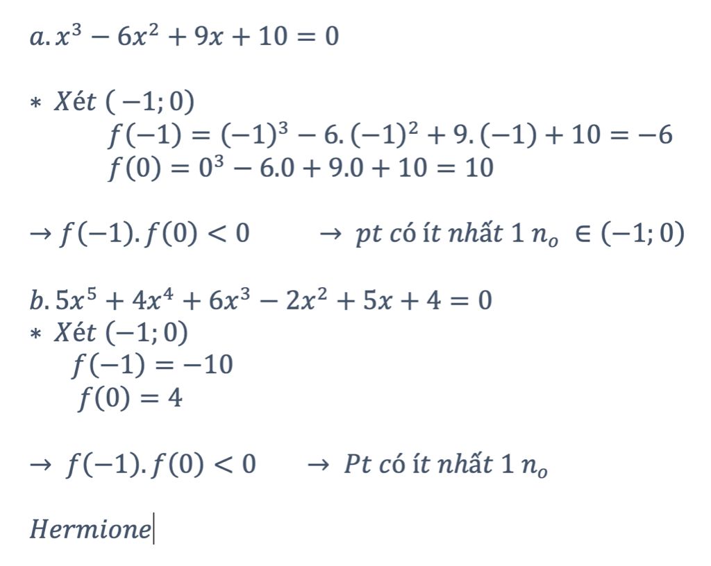 Đáp án:a, pt ${x^3} -6.{x^2}$+9x+10=0 luôn có nghiệm