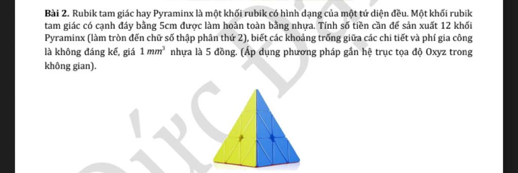 Bài 2. Rubik tam giác hay Pyraminx là một khối rubik có hình dạng của một tứ diện đều. Một khối rubik