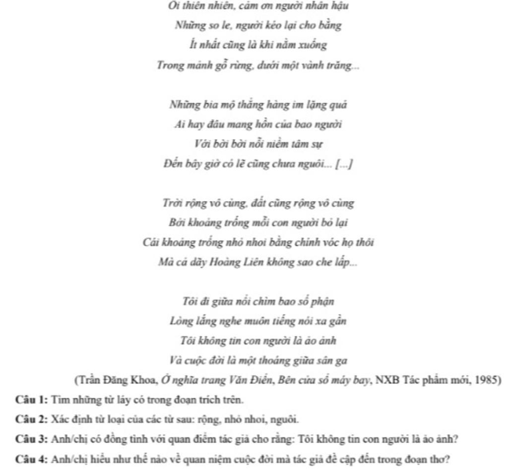 3. Em hoàn toàn đồng tình với câu thơ này. Mỗi cá nhân đều có sự tồn tại và để lại dấu ấn là những gì tốt đẹp mà họ để lại trong cuộc đời. Sự tồn tại của con người để lại dấu ấn với những gì họ làm