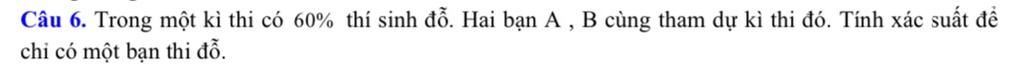 Vậy xác suất để chỉ có một bạn thi đỗ là $0,48$ hay $48\%$