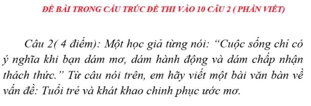 ĐỀ BÀI TRONG CẤU TRÚC ĐỀ THI VÀO 10 CÂU 2 ( PHẦN VIẾT)