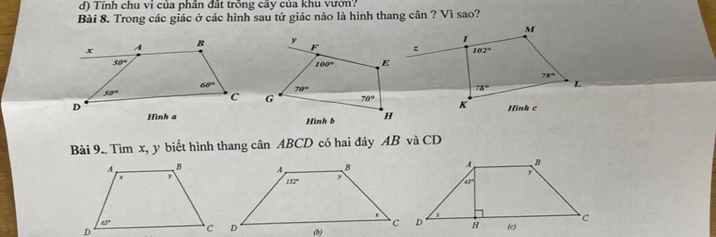 Bài 8. Trong các giác ở các hình sau tứ giác nào là hình thang cân ? Vì sao?