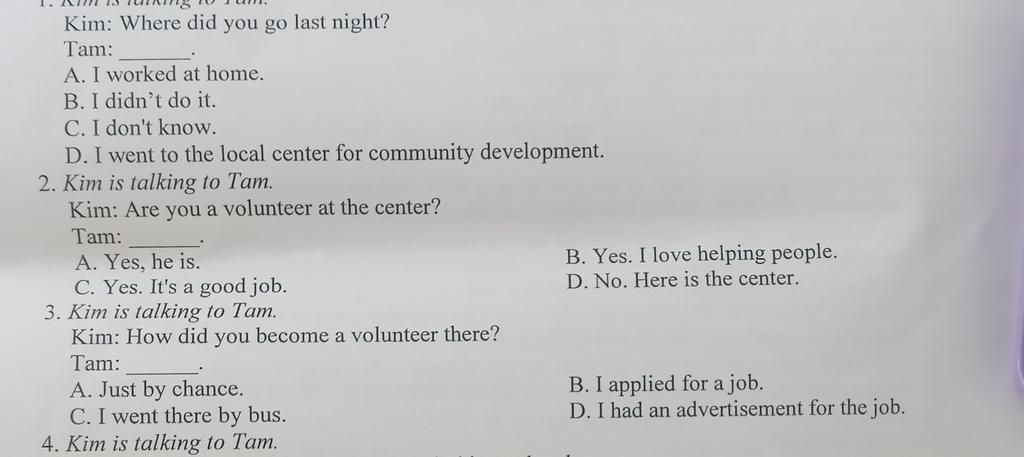 Kim: Bạn có phải là tình nguyện viên tại trung tâm không?