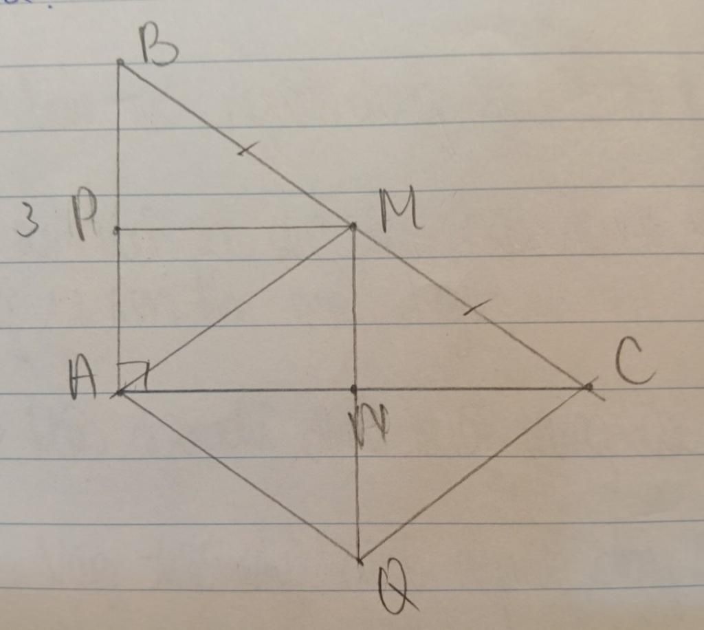 b)Gọi Q là điểm đối xứng với M qua N. Chứng minh tứ giác AMCQ là hình thoi.