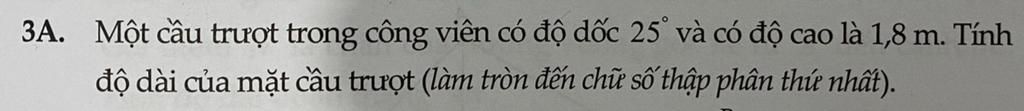 `(1,8)/(sin25^@)~~4,3 (m)`