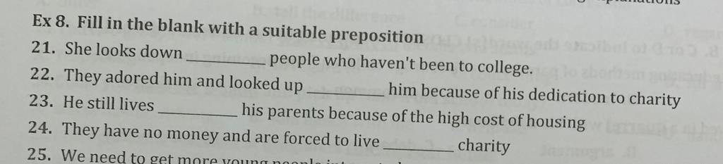 `-` Look up to + sb : ngưỡng mộ ai >< Look down on + sb : coi thường ai